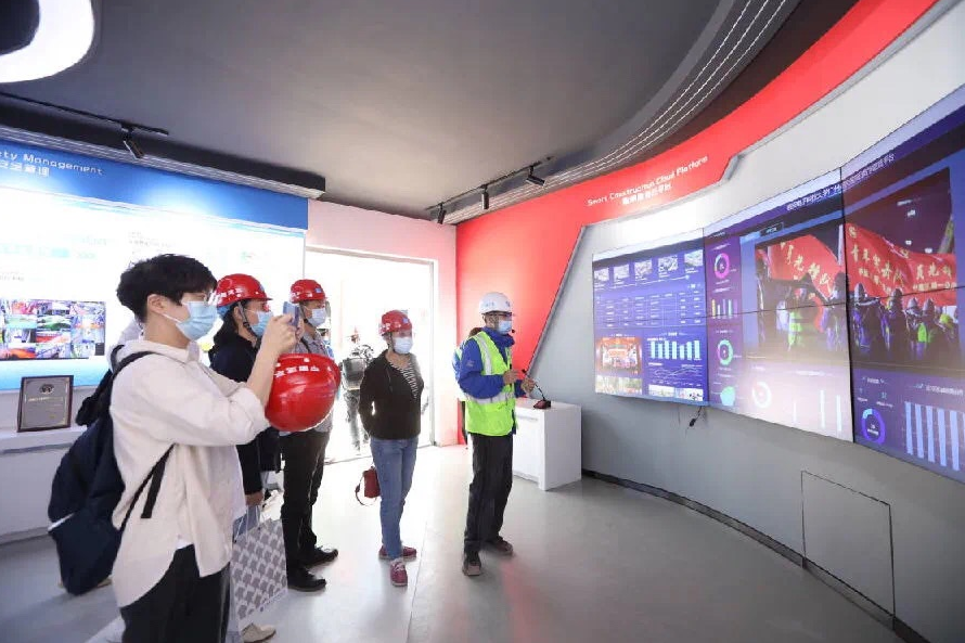 此次“西安電子科技大學(xué)廣州研究院項(xiàng)目”觀摩會分為智慧裝配建造展示區(qū)、數(shù)智建造展廳、精益建造展區(qū)、精益建造展區(qū)、智慧工地展示區(qū),共5個展區(qū)。全面展示項(xiàng)目施工現(xiàn)場智慧工地和綠色施工的管理模式。