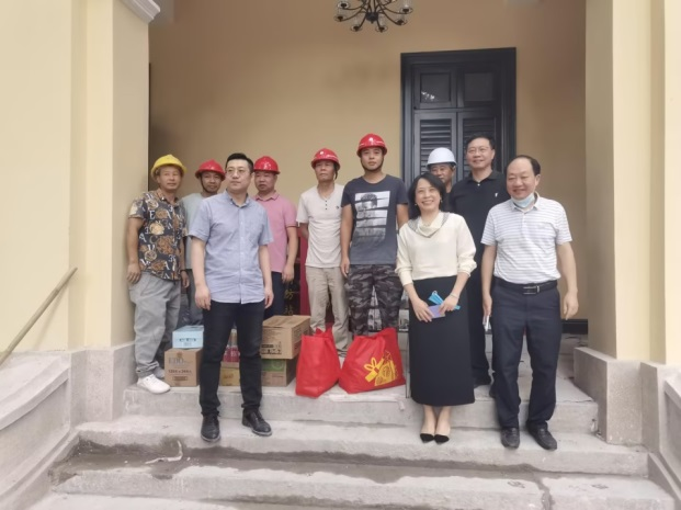 規(guī)劃院工會、總工辦工程專業(yè)總工一行聽取項目的情況匯報,了解項目進展情況及工期要求。規(guī)劃院工會馬云主席、總工辦曾國勝總工強調,即使工期比較緊急,也要在保證安全的前提條件下趕工,確保每一位工人的人身安全。隨后發(fā)放清涼飲料、水果、零食等慰問品給工人,并向為規(guī)劃院的建設付出辛勤勞動的工人表示親切的問候和誠摯的感謝。