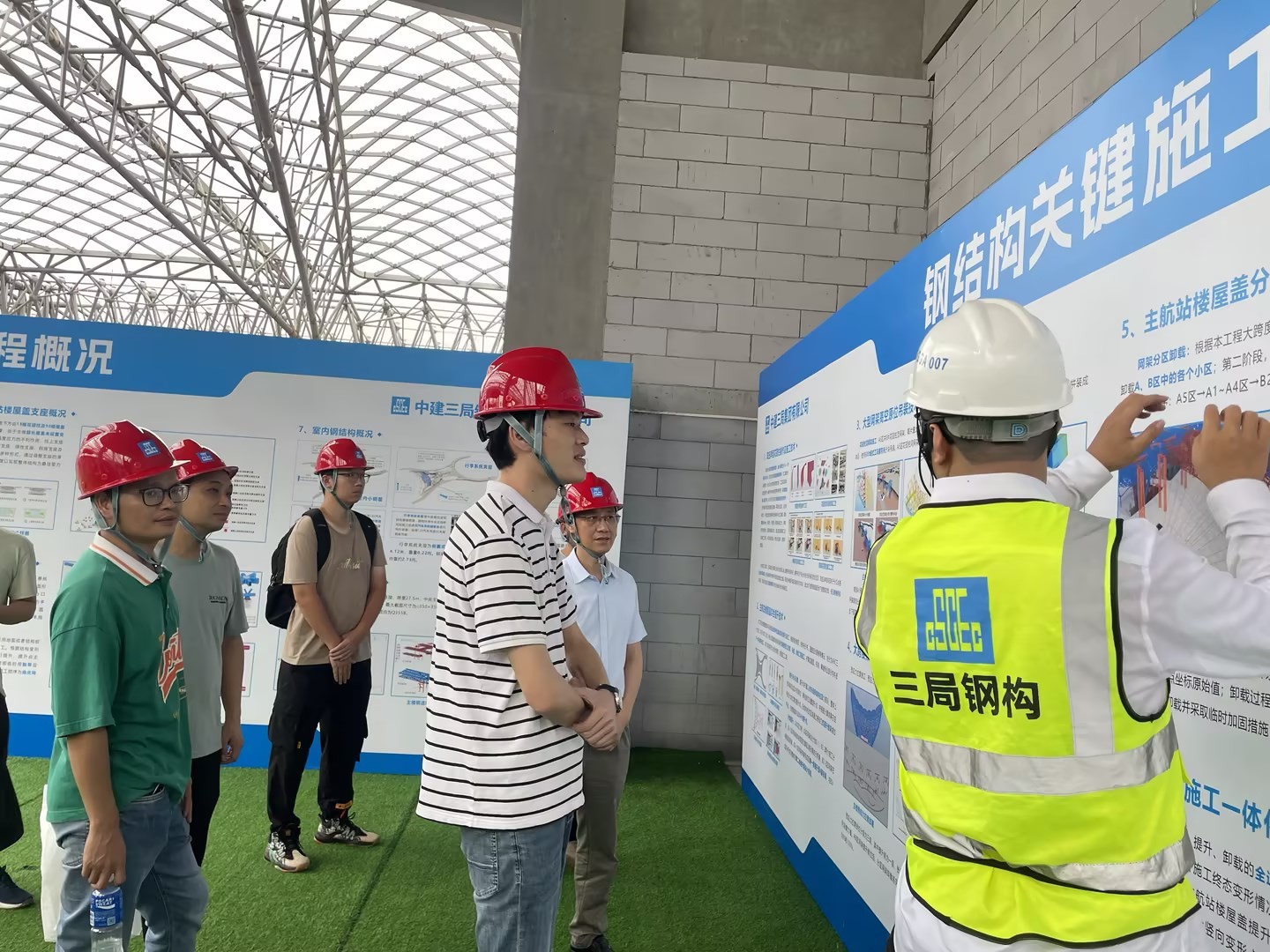 本次觀摩是中建三局廣州白云國(guó)際機(jī)場(chǎng)三期擴(kuò)建工程項(xiàng)目T3航站樓工程,項(xiàng)目設(shè)計(jì)新穎,總建筑面積69.32萬(wàn)㎡,建筑高度42.95米,航站樓地上4層,局部5-6層,地下1層,局部2層,主體為鋼筋混凝土框架、屋蓋采用預(yù)應(yīng)力網(wǎng)架+桁架結(jié)構(gòu),作為亞洲最大的機(jī)場(chǎng)擴(kuò)建工程,建成后將與T1、T2一起運(yùn)行年旅客吞吐量世界第一。