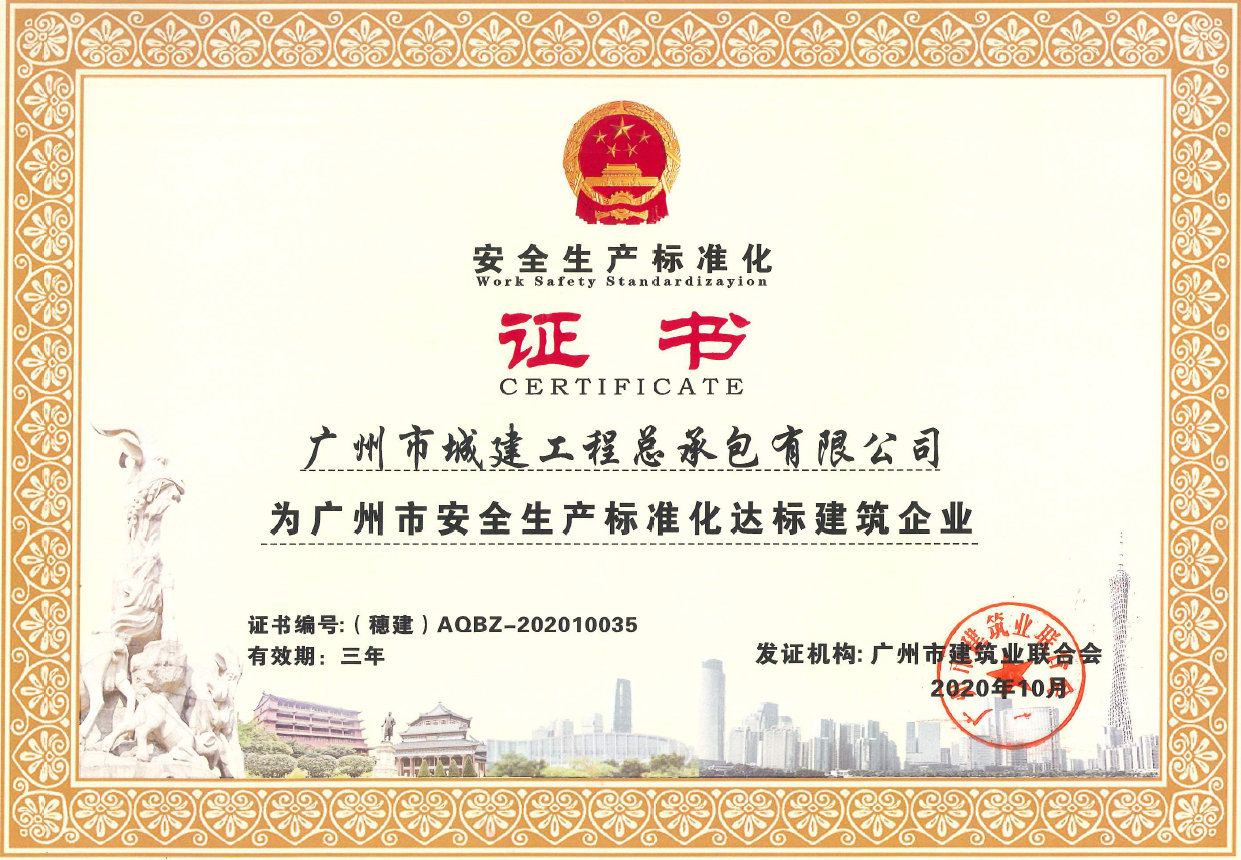 公司經(jīng)過開展企業(yè)自評和專家到企業(yè)、施工現(xiàn)場進行復(fù)評等兩個階段的評定,順利通過安全生產(chǎn)標準化的達標認證工作,獲得廣州市安全生產(chǎn)標準化達標建筑企業(yè)證書。 本次公司通安全生產(chǎn)過標準化的評定,進一步...