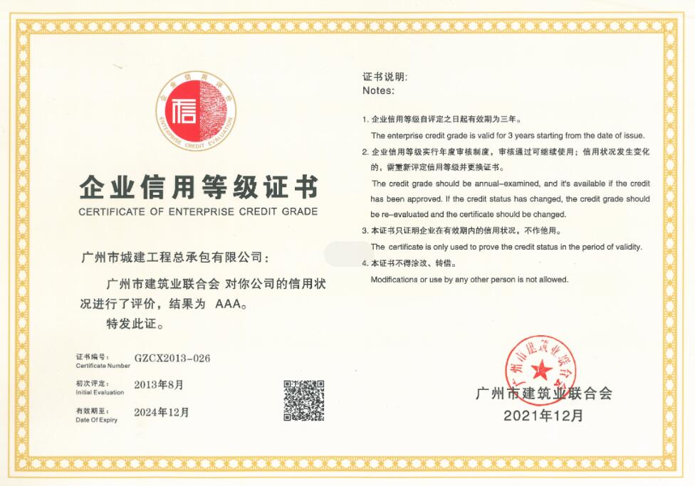 廣州建筑業(yè)AAA等級誠信企業(yè)