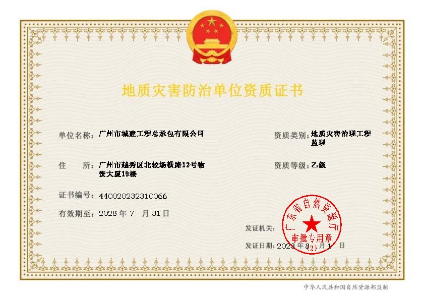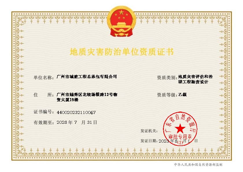 地質(zhì)災害治理工程監(jiān)理乙級資質(zhì)