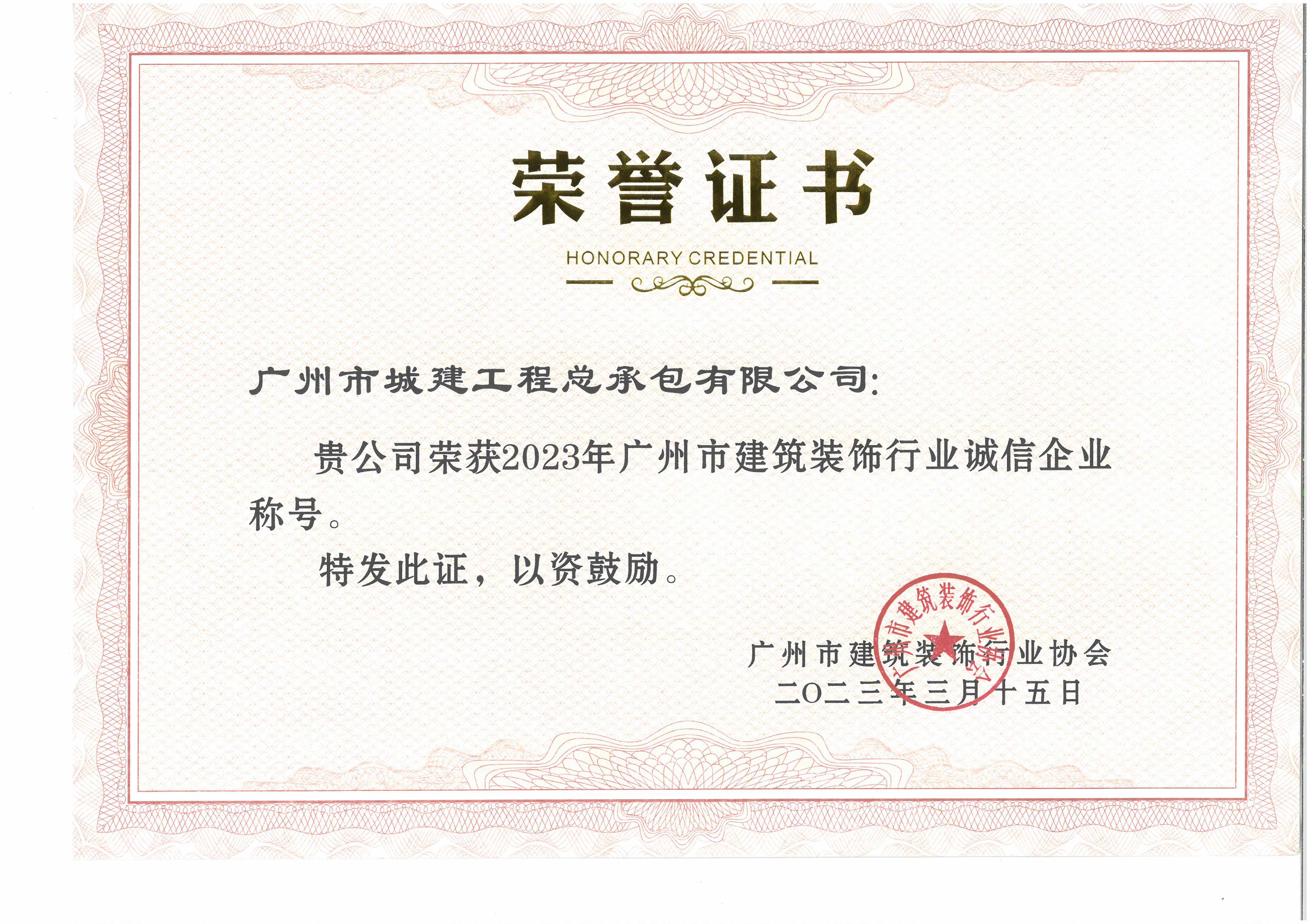 廣州市建筑裝飾行業(yè)誠信企業(yè)2023