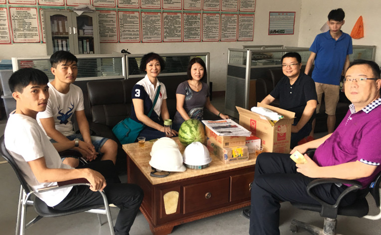 2017年6月、7月,公司領(lǐng)導(dǎo)班子及工會(huì)全體成員分別到廣州二沙島文化娛樂中心、增城掛綠新城、梅州嘉應(yīng)醫(yī)院住院大樓、廣州宇蒙實(shí)業(yè)有限公司廠房、番禺洲山大廈、云浮市糧油儲(chǔ)備直屬庫工程項(xiàng)目部,親切走訪慰問看望工程一線生產(chǎn)管理人員,并為他們送去防暑降溫藥品、清涼飲料。
