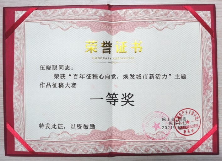 今年是中國共產(chǎn)黨建黨100周年,為慶祝我黨百年崢嶸歲月,我公司職工伍曉聰同志積極參加規(guī)劃院開展“百年征程心向黨,煥發(fā)城市新活力”作品征集活動(dòng),其作品《英雄》榮獲一等獎(jiǎng)。